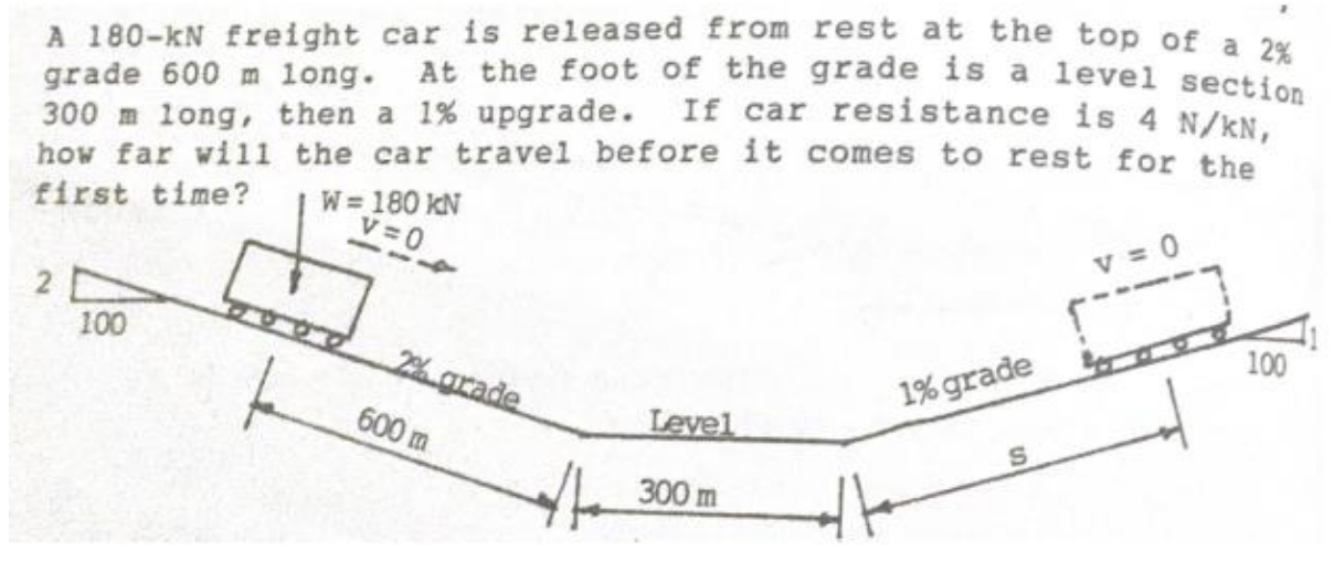 Solved A 180 Kn Freight Car Is Released From Rest At The Top Chegg Com